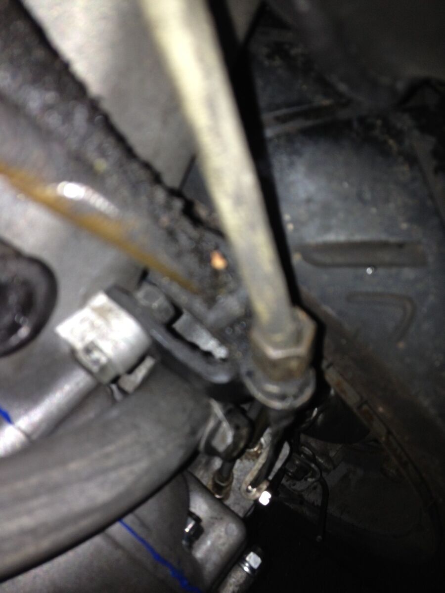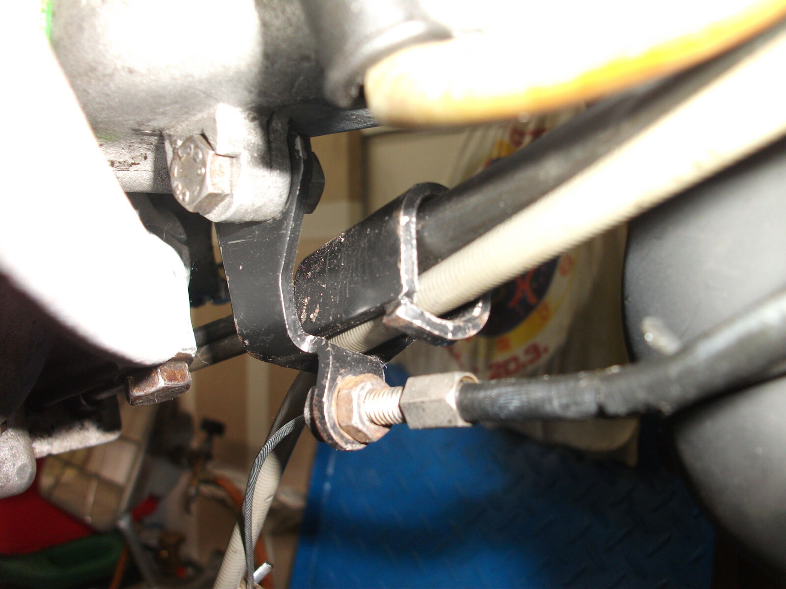 Motor ist wieder eingebaut, aber die Züge schleifen am Hinterrad. Da gibts ja diesen Halter für die Züge, der in Fahrrichtung recht weit vorne an den Motor geschraubt wird.
