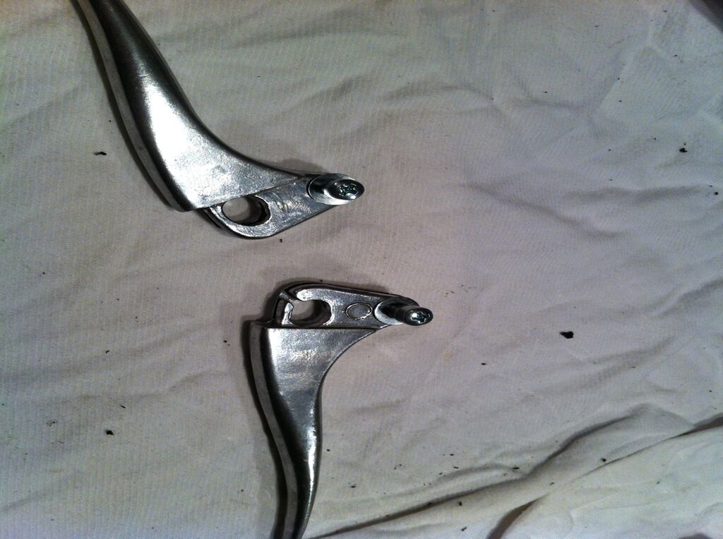 2. Diese wundervollen (...) Bremshebel, die ich mein eigen nenne sind identisch (als Set gekauft). Wie auf dem Bild zu sehen ist, läuft dann demnach auf der linken Seite der Zug unten und auf der rechten Seite der Zug oben durch...