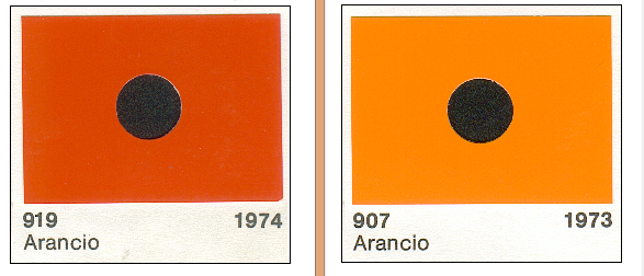 noch jemand eine Idee betreffend der Farbe arancio 919 ? das erste Foto zeigt ja vermutlich ein altes Prospekt aus den 70'ern