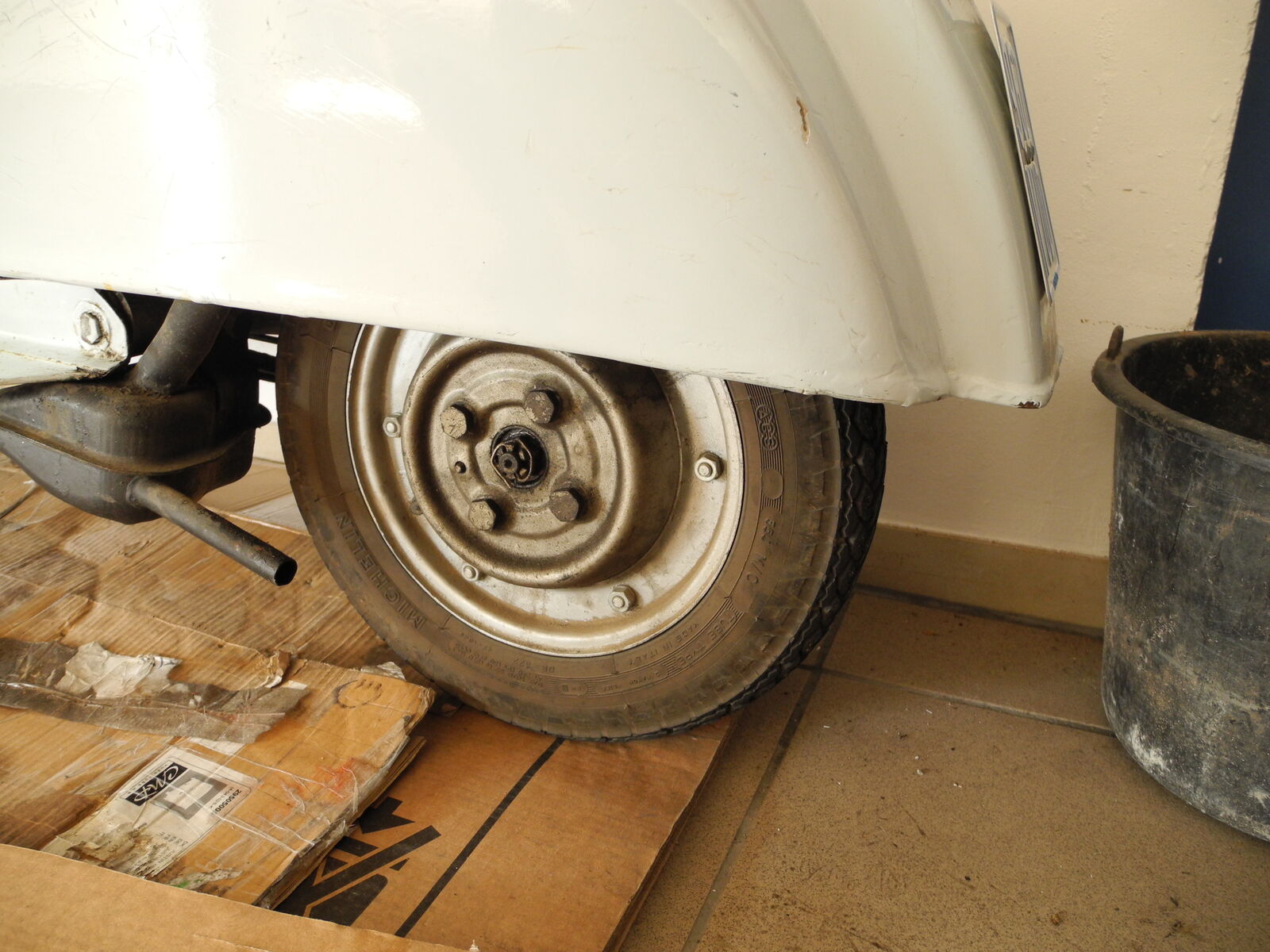Ich hab seit etwa 5 Monaten eine Vespa 50 L Bj. 67. Als ich sie dann für diesen Sommer fit machen wollte ist mir aufgefallen, dass meine Hinterrad (bzw. Hinterrad + Motorblock) etwas schief sitzt.