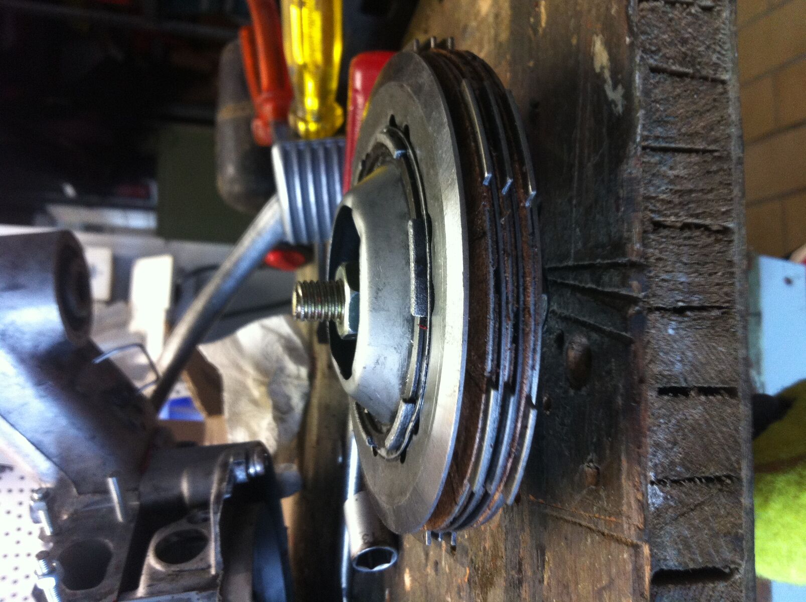 Die Höhe des ganzen Paketes wird durch den inneren Kupplungskorb bestimmt! Als Anschlag dient der Sprengring!