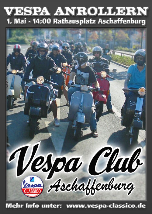 Am 1. Mai um 14.00h ist es wieder soweit... die Zeit ist reif für ein spontanes Treffen von über hundert Vespafahrern aus Aschaffenburg und der Region.