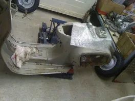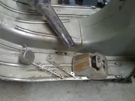 So, es geht um eine V50 Elestart 1. Serie, sprich geschwungene Schriftzüge, schwarze Kaskade sowie kleinem Antikrücklicht. Rahmennummer auf dem Trittblech...Original Papiere habe ich glücklicherweise.