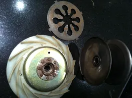 So ich hab mir das noch mal angesehen, wobei Deine Bilder nicht wirklich eine Hilfe sind. Die Teile 1- 5 sollten die untere Riemenscheibe darstellen. die Teile 6 die obere Riemenscheibe. Wobei das Lüfterrad als erstes auf die Welle kommt, da sollte ein Halbmondkeil drin sein, dann gehört die Riemenscheibe da drauf. Halt das doch mal zusammen dann siehst Du doch ob auf der Riemenscheibe irgend was ist, was da rein fassen könnte.