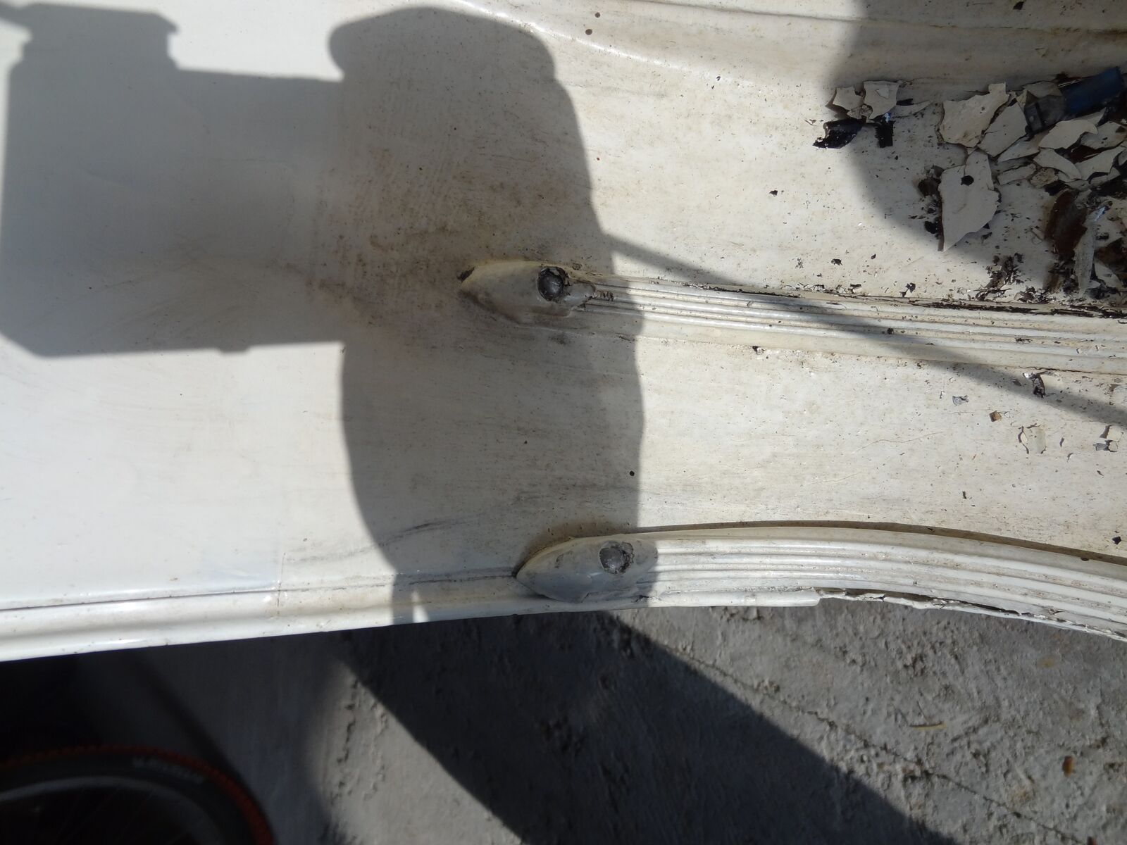 Die Vespa wird wohl die 100Millionste weiße Vespa weil ich mich schon daran gewöhnt hab und keine andere Farbe mehr möchte. Der Original-Lack ist Orange (ist nicht mehr zu retten, Rost drunter) und ist mit Weiß vor 25 Jahren überpinselt worden (sieht übel aus