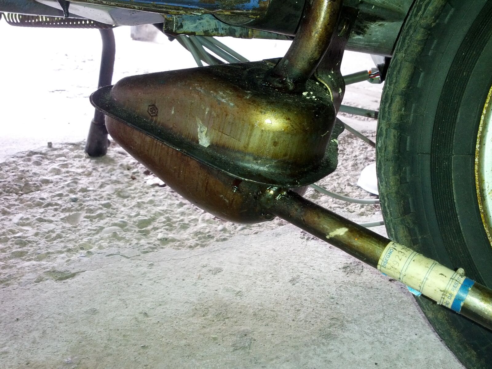An meiner neuesten Errungenschaft war ein original Piaggio Auspuff montiert, der jedoch keinen Krümmer benötigt und außerdem offensichtlich ein dünneres Rohr hat. Hat jemand schonmal so ein Ding gesehen, weil ich nirgends Informationen darüber finden konnte. Obwohl er anscheinend original von Piaggio ist hat er keine IGM Nummer eingeschlagen was den TÜV vermutlich nicht sonderlich erfreuen wird?!
