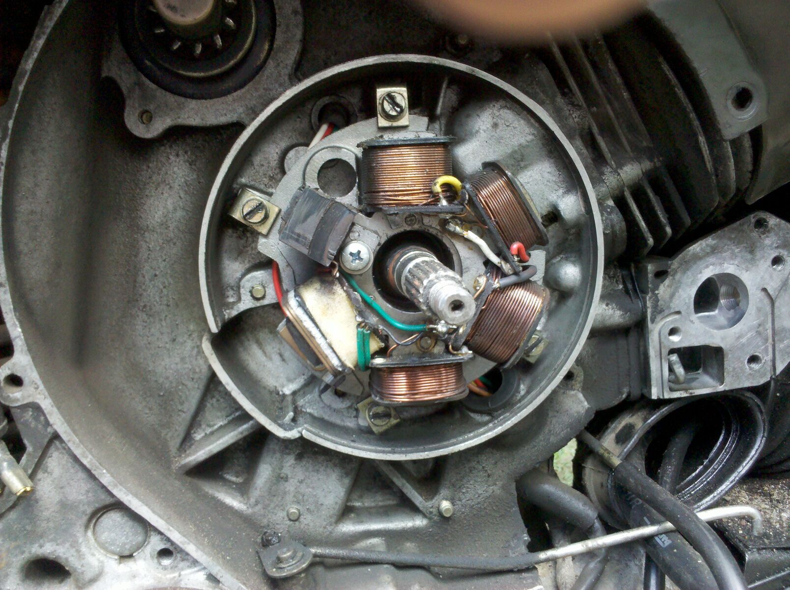 Ich muß ehrlich gestehen, daß ich mittlerweile nicht mehr so leichtfertig nach dem Try and Error Prinzip vorgehen möchte, da der Blecheimer verglichen mit einem Plastikroller wohl echt von einem Betrunkenen konstruiert worden sein muß... Sonst kann ich es mir nicht erklären, wie man eine Befestigungsschraube für das Luftleitblech hinter den Kupplungskorb verbauchen kann... Aber Egal, meine Frage ist folgende, ich würde gern die Spulen mal durchmessen, weiß aber weder welche Werte sein sollten, noch an welchen Punkte ich mein Multimeter ansetzen sollte... Ich bin mir weiterhin auch nicht sicher ob die Zündung evtl. einfach nur verstellt ist, da ich aber weder eine Zünd-Blitz-Pistole besitze noch Zugang zu einer habe, ist das schwierig zu erruieren. Die nächste sich mir aufdrängende Frage ist, wenn die Zündung nur verstellt wäre, müsste das Ding doch zumindest Bergab schneller werden, oder nicht?