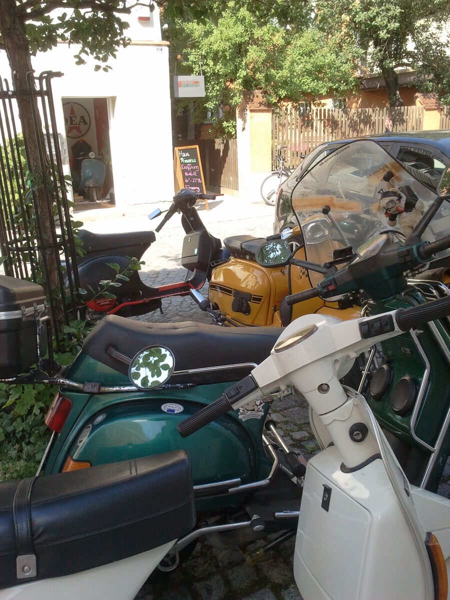 Unter dem Namen Primamoto ist nun der Rollerladen und ein Cafe sowie ein Biergarten und ein Studio vereint.