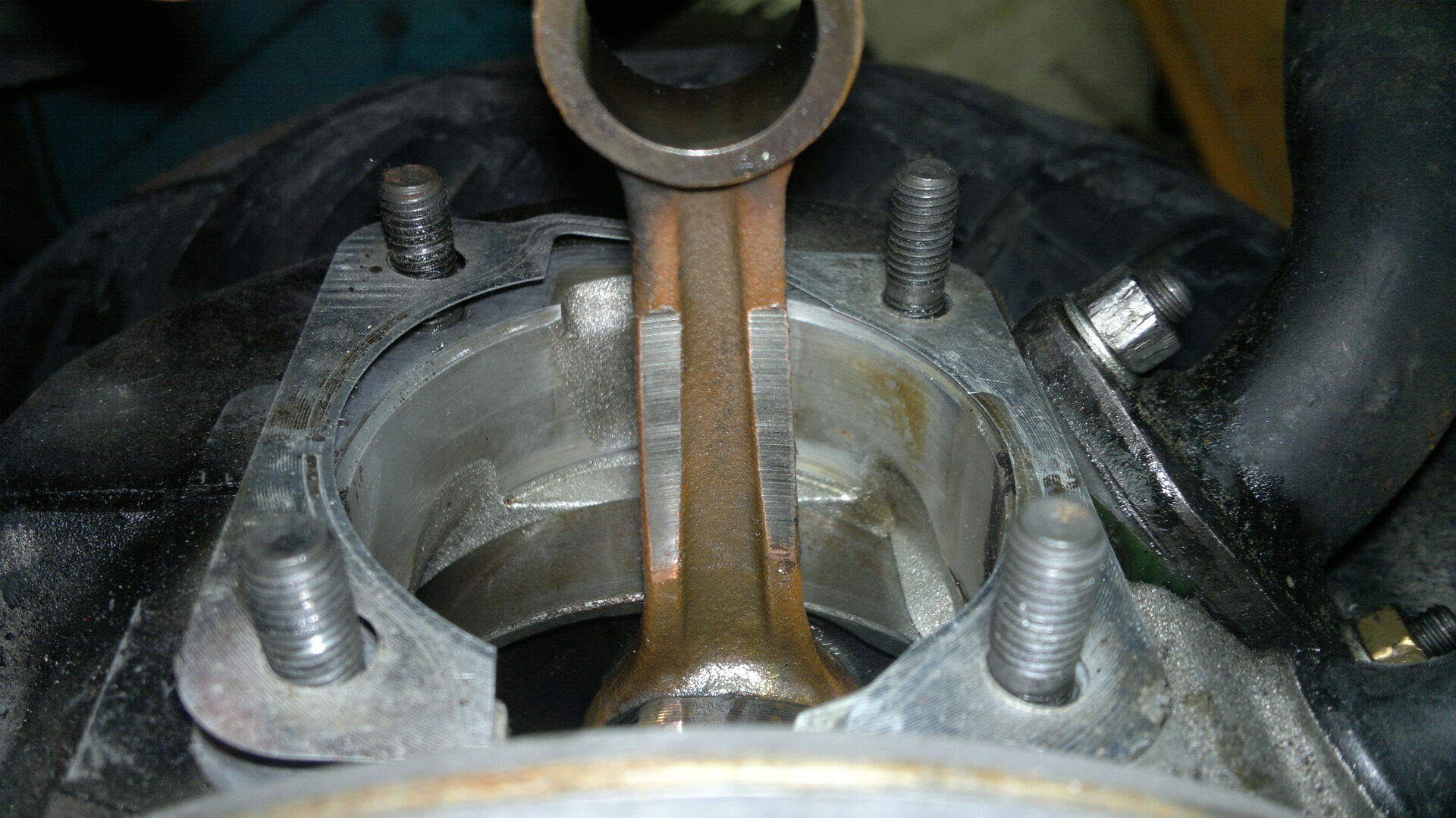 Dann sieht man die beiden Backen an den Seiten, (ich weiß im Moment nicht genau wie die heißen). Und wenn ich dann die Pleulstange reinschiebe und rausziehe drehen sich ja diese beiden backen. Und genau dann schleift eine der beiden backen an der motrrwand innen wo er eigendlich so locker herführen sollte!!