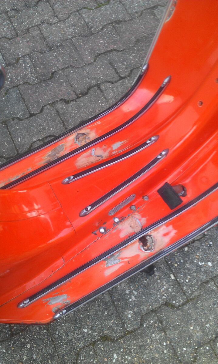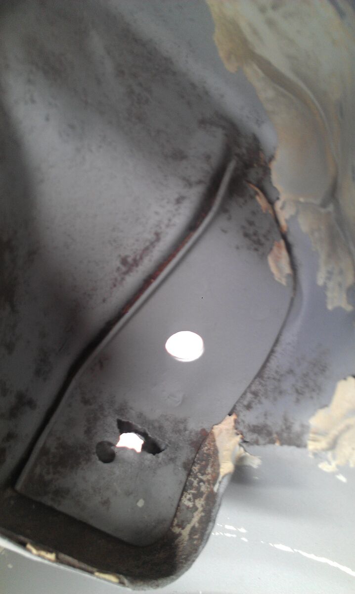 Leider habe ich kein Bild vom Trittbrett, ist komplett grade, Durchrostung nur die vordere Strebe und das was genau darüber liegt. Mach ich aber kein neues Trittbrett rein, der Rest ist viel zu gut. Ich mach mir da schön selber Bleche rein, dann verzinnt und fertig! Ach ja Strebe hab ich neu!