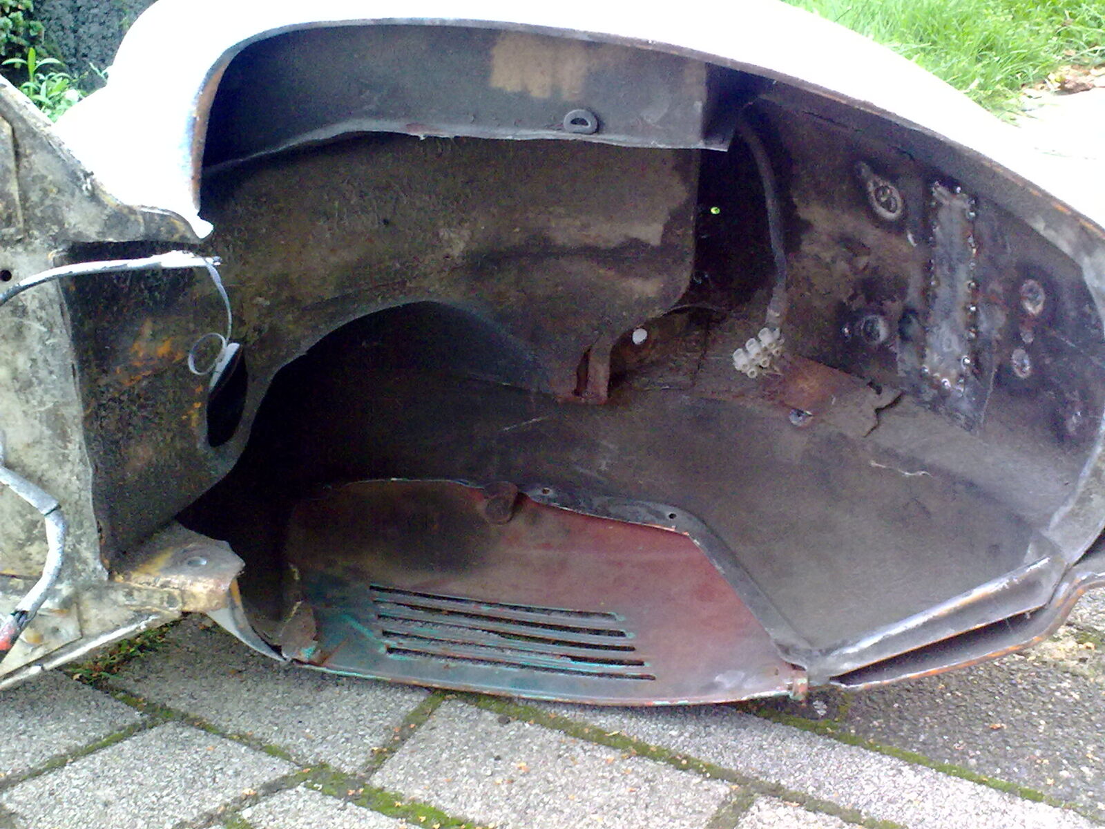 Yo Ulmi so hatte ich mir das auch gedacht, ich wollte halt für das komplette Stück ein Blech machen und das von unten verschweissen, dann das loch für den Stossdämpfer neu bohren. Von oben die Löcher dann noch zu schweissen, beiflexen und fertig. Ich bin ja eben noch gefahren mit der Vespa, hat mich also ausgehalten, hab Sie aber eben schnell komplett zerlegt damit Montag gestrahlt werden kann.
