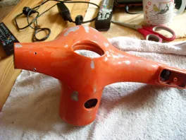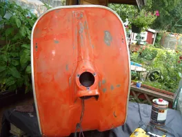heute hat ich mal wieder etwas Zeit und habe mal den Lenkkopf freigelegt. Wie bei den anderen Teilen auch war dieser mit Schleifpapier der Körnung gefüllte 8-10 angeschliffen worden. Erst war schön viel O-Lack zu sehen habe mich schon riesig gefreut. Dann kam aber mal wieder die Ernüchterung. Der jenige der das damals gemacht hat hatte entweder keine ahnung oder Lust. Stellenweise ist garnicht angeschliffen und teileweise bis auf Alu hinunter.Bin blos froh das alle Teile von der selben Vespa stammen. Da sieht das Endergebnis wenigstens gleichmäßig aus. Ein Kollege hat mir vorgeschlagen die kompletten Teile zum Schluss mit Klarlack zu überziehen. Wäre das sinnvoll? Habe da bedenken wegen den Roststellen. Werde diese auf jedenfall mit Oxyblock behandeln damit es nicht weiter gammeln kann.