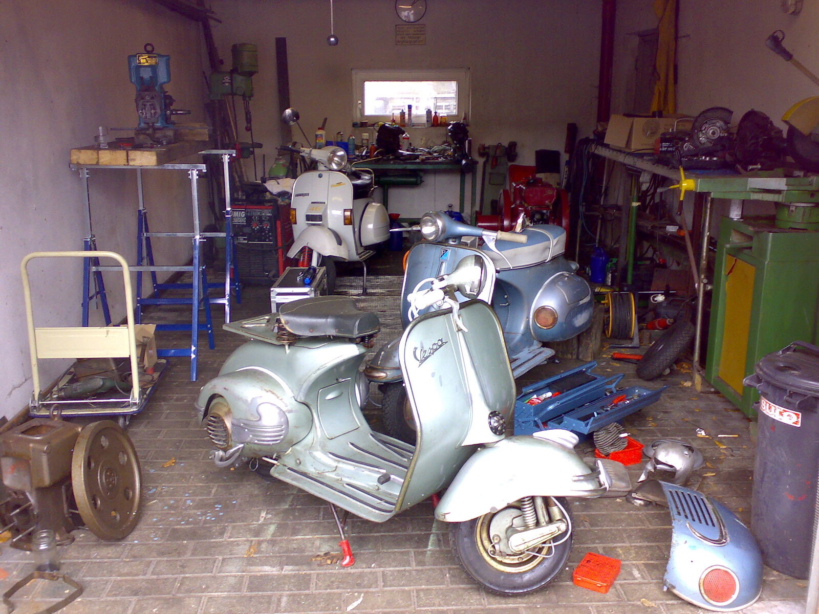 Im Folgenden möchte ich noch einige Bilder von zwei ACMA-Restaurationen, sowie 2 Bilder eines geöffneten PX 200 Motors, den ich ebenfalls instandgesetzt habe. Die grüne ACMA '53 (Originallack) habe ich in Einzelteile, die 150GL komplett gekauft. Ebenfalls sind einige Oldi-Roller aus meiner Sammlung zu sehen.