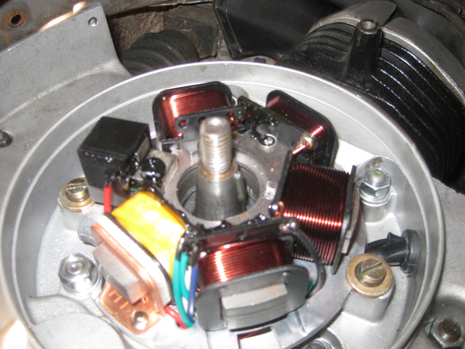 Da ich bei meiner Vespa 50N Special (V5B3T) mit 4 Blinkern also 12V, einige Probleme mit der Kontaktzündung hatte entschied ich mich für den Umbau auf eine elektronische Zündung. Dazu bestellte ich mir die CDI und die neue Zündgrundplatte, das 12V Polrad war ja schon vorhanden. Nach dem zusammenbau bekam ich aber leider keinen Zündfunken worauf ich die Zündung durchgemessen habe. Dabei bekam ich raus das dem anschein nach an der Grundplatte alles ok ist (Masse und Grün 500 Ohm, Masse und Rot 110 Ohm und am grünen Kabel kommen bei schnellem kicken bis zu 80V an). Danach habe ich die CDI durchgemessen und festgestellt das diese kaputt ist da Messwerte nicht gestimmt haben. Darauf habe ich mir eine neue zuschicken lassen und vor Einbau durchgemessen, wobei die selben Messwerte zu erkennen waren, was mir aber unlogisch erscheint da sie neu war und nicht 2 Stück kaputt zugeschickt werden. Nach einbau war auch kein Zündfunke zu erkennen und Zündkabel, Kerze usw. wurde alles getauscht und ausprobiert. Nun meine Frage ob ihr noch eine Idee habt woran dies liegen könnte oder ob ich noch etwas anderes prüfen kann? Ich wollte mir jetzt die tage mal die Original Piaggio CDI bestellen und wär für jede Idee und Hilfe dankbar, da mich die Elektrik noch in den Wahnsinn treibt. ![]()