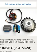 Ich habe mir dafur eine kontaktlose zündung 12v gekauft.