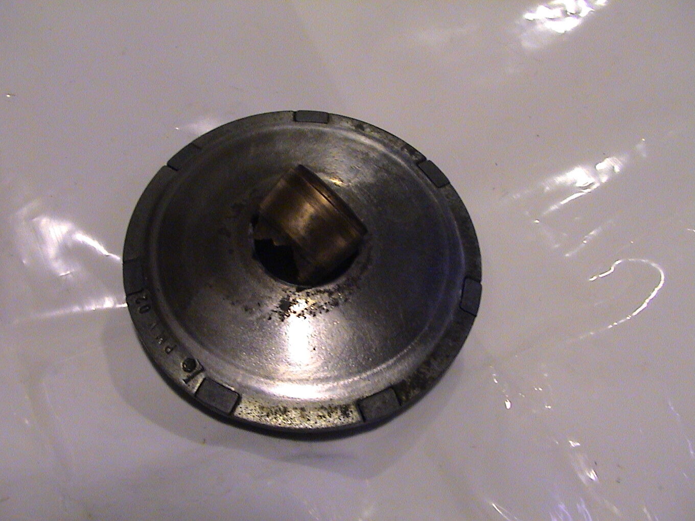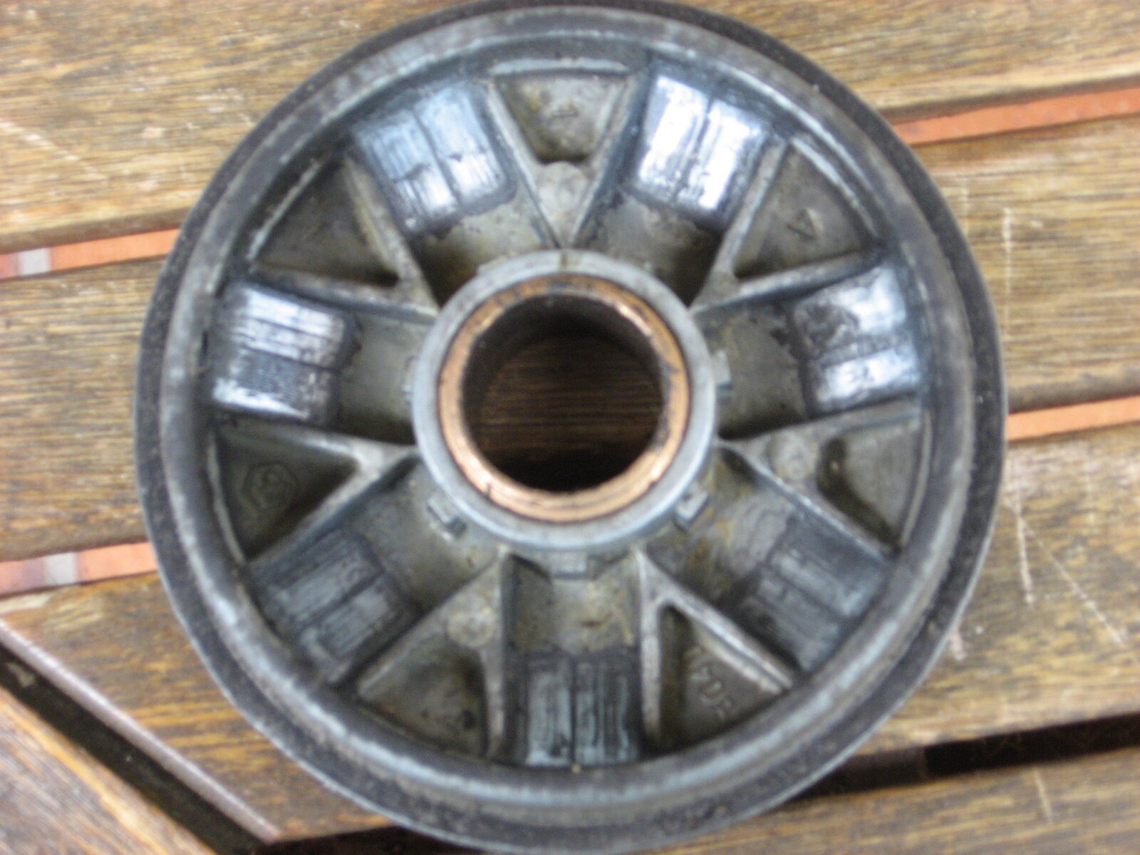 Jetzt kann ich euch paar Bilder vom def. Teil zeigen. Warscheinlich hat sich eine Rolle quer gestellt und die Hälfte fing an zu eiern, dadurch ist dann wohl die Bronzehülse losegegangen. Laut Vespahändler ist das Teil nicht mehr bestellbar.