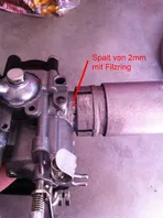 Ferner fand sich in der Gussschutzkappe kein Filzring, sondern eine Masse die stark nach Silikon aussah. Im Vergaserflansch selbst ist auch kein O-Ring (keine Nut vorhanden).