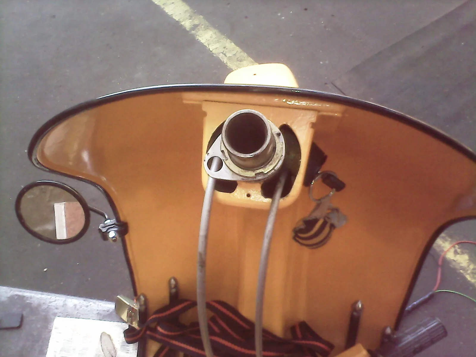 außerdem bin ich endlich dazu gekommen den xl2 motor zu verbauen mit 1zug schaltung. hab mir nen halter für den schaltdraht gebastelt und nen schaltarm für das schaltrohr. weil ich es nicht übers herz gebracht hab das schaltrohr unwiderruflich umzubauen. das letzte bild zeigt den hebel im 4ten gang, bleibt also noch ein bissi luft...könnte sogar nen bearbeiteten ori. tacho verbauen, aber ich wills erstmal mit nem digi fahrradtacho versuchen.