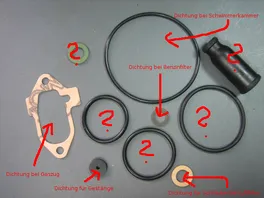 Ich habe ein etwas peinliches Problem: Ich habe den Vergaser einer Vespa PK 50s (Dell'Orto SHB 16:10F) komplett zerlegt, gereinigt ud wollte ihm neue Dichtungen spendieren... Allerdings finde ich nicht für alle Dichtungen eine Position, ich habe im Bild unten alles beschriftet und würde euch bitten mir zu sagen wenn eine davon nicht stimmt, bei den anderen habe ich leider keine Ahnung woin die kommen... Ich hoffe Ihr könnt mir weiterhelfen!