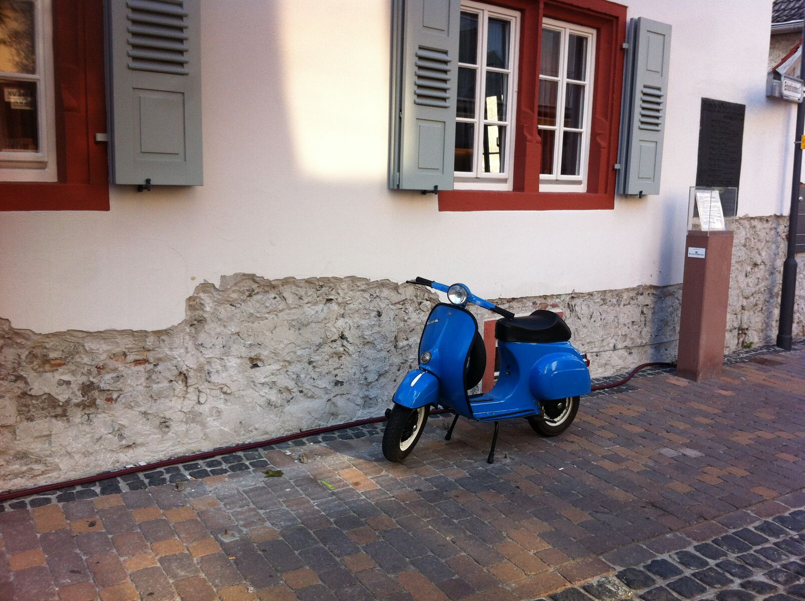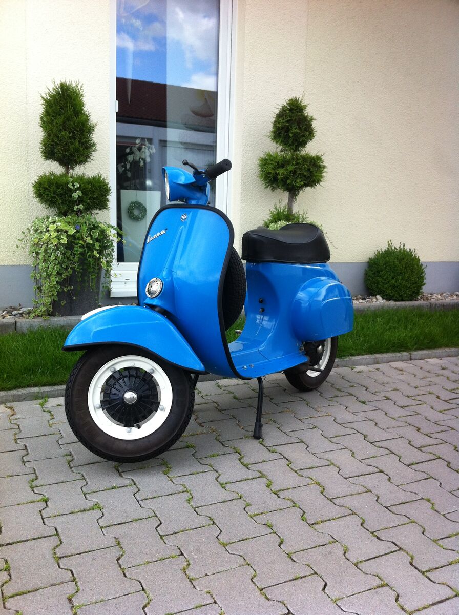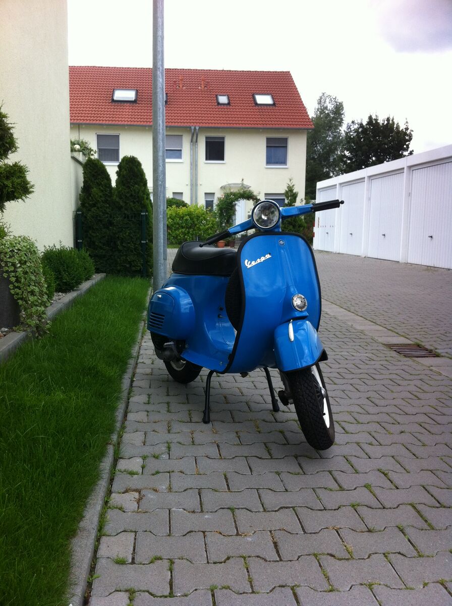 Die org. Farbe war mal orange, scheint an manchen Stellen noch durch. Die Vespa wurde von einem Vorbesitzer einfach übergepinselt.