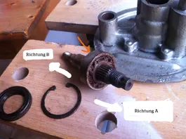 Meiner Meinung nach geht das Lager in Richrung A runter. aber das sieht man doch wenn man sich die Welle mal genauer anschaut.