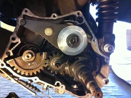 ich kann die untere Riemenscheiben komplett, mitsamt der Fliehkraftkupplung etwa 1-2 cm nach außen ziehen, dann ist schluß. Zur gleichen Zeit hängt der Kickstarter aus. Wenn ich alles wieder reinschiebe und einraste, greift auch wieder der Kickstarter. Die Glocke der Fliehkraftkupplung bleibt an Ihrem Platz. Öl ist frisches Dextron II/III LiquiMoly drin. Sind auf jeden fall über 500 ml drin. Habe voll gemacht, bis es wieder rausgelaufen ist. Ist das zuviel?