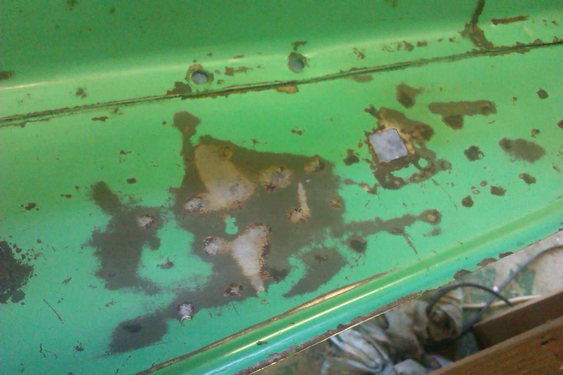so nochwas zur karosserie: hat natuerlich hier und da etwas rost angesetzt unterm lack, nitgends das bleck angegriffen aber doch ueberall..
