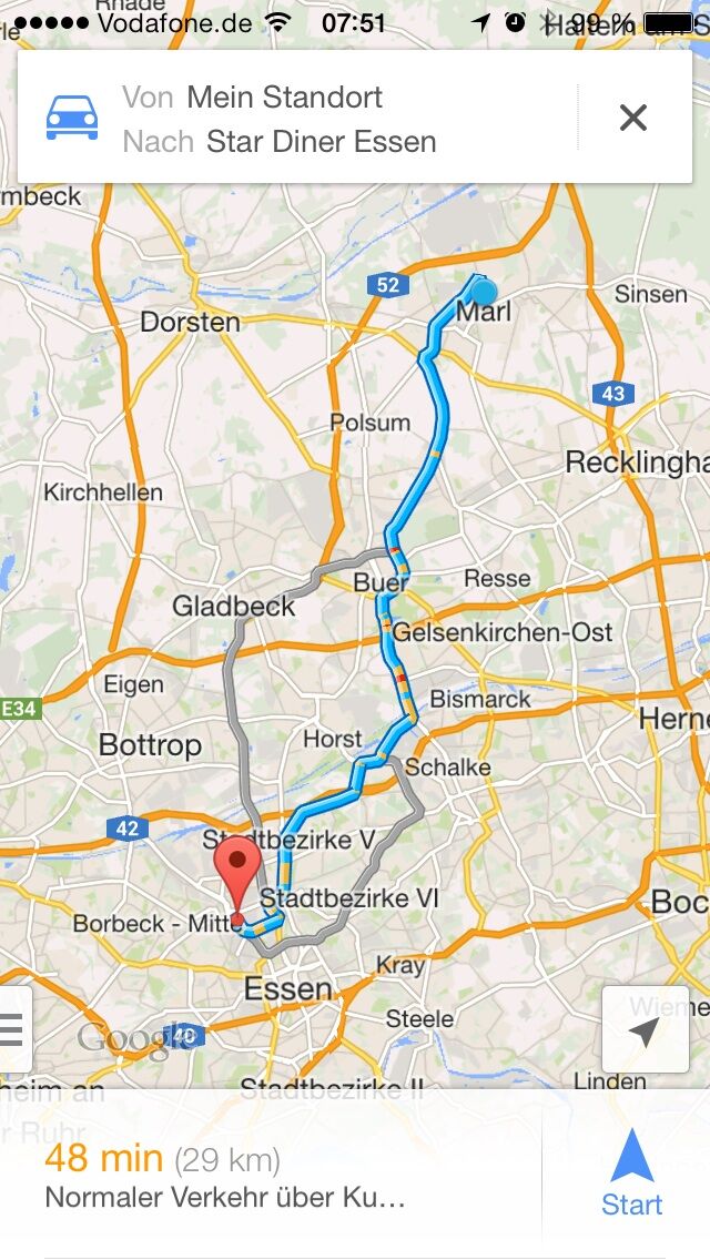 Das können wir machen. Aber komm mir jetzt nicht mit 2 Stunden vorher losfahren. 11.00 Uhr am Diner, heißt 10.30 Uhr losfahren. Keine Sekunde eher. ![]()