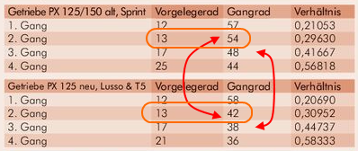 sollte das alles nicht machbar sein, kommt wohl die "geldbeutelvariante", bei der ich einen 125er t5 motor einbaue. dank feindstaub - äh - kellerk!nd weiß ich, dass das bis auf die bremse kein problem ist und dass der motor mehr aushält als der px-motor. ich denke, das muss er wohl auch, wenn er mit höheren drehzahlen und leistungswerten bei gleicher hubraumzahl daherkommt.