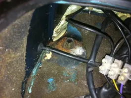 Alles für kleines Geld machbar dachte ich, Dann sah ich das der Auspuff komplett lose ist und montierte ihn wieder korrekt. Also ich die Vespa auf die Seite legte nachdem der Tank demontiert war fielen mir diverse Teile unter andrem auch das hintere Federbein entgegen.. Nach langem gogglen war mir klar, diesen Teller den ich gestern meinte ich ist ausgebrochen... Dann montierte ich diese Häßlichen Riffelblech Fussmatten oder ich es nennen soll ab. Einmal mit dem Schraubenzieher aufs Bodenblech geklopf .... LOCH... Also was soll ich machen???? Eigentlich würde ich sagen Sandstrahlen und Schweißen.. Oder was meint ihr ????? Habe ein bisschen bedenken wenn ich alles also auch Züge und so weiter ausbaue das sie niemehr läuft...