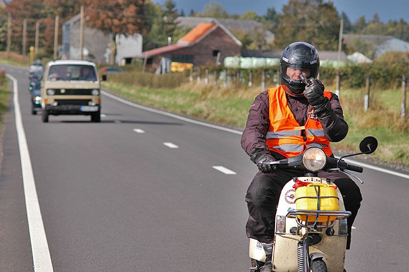 Diesmal geht es wieder durch Belgien. Die Strecke ist bisschen kürzer geworden, so dass wir ohne Tankpause auskommen werden. Wer die 60km mit einer Tankfüllung nicht schafft, kann ja selber Benzinkanister mitnehmen. Nach 30km machen wir eine kleine Pause.