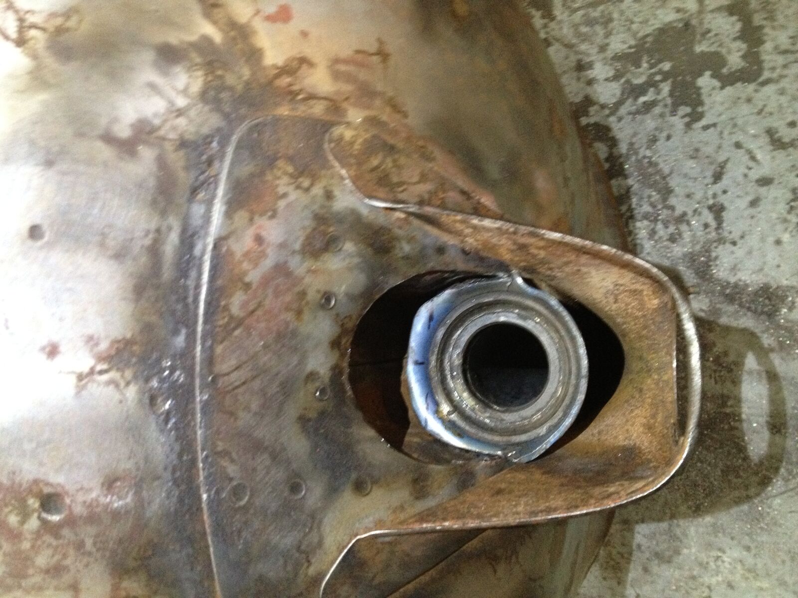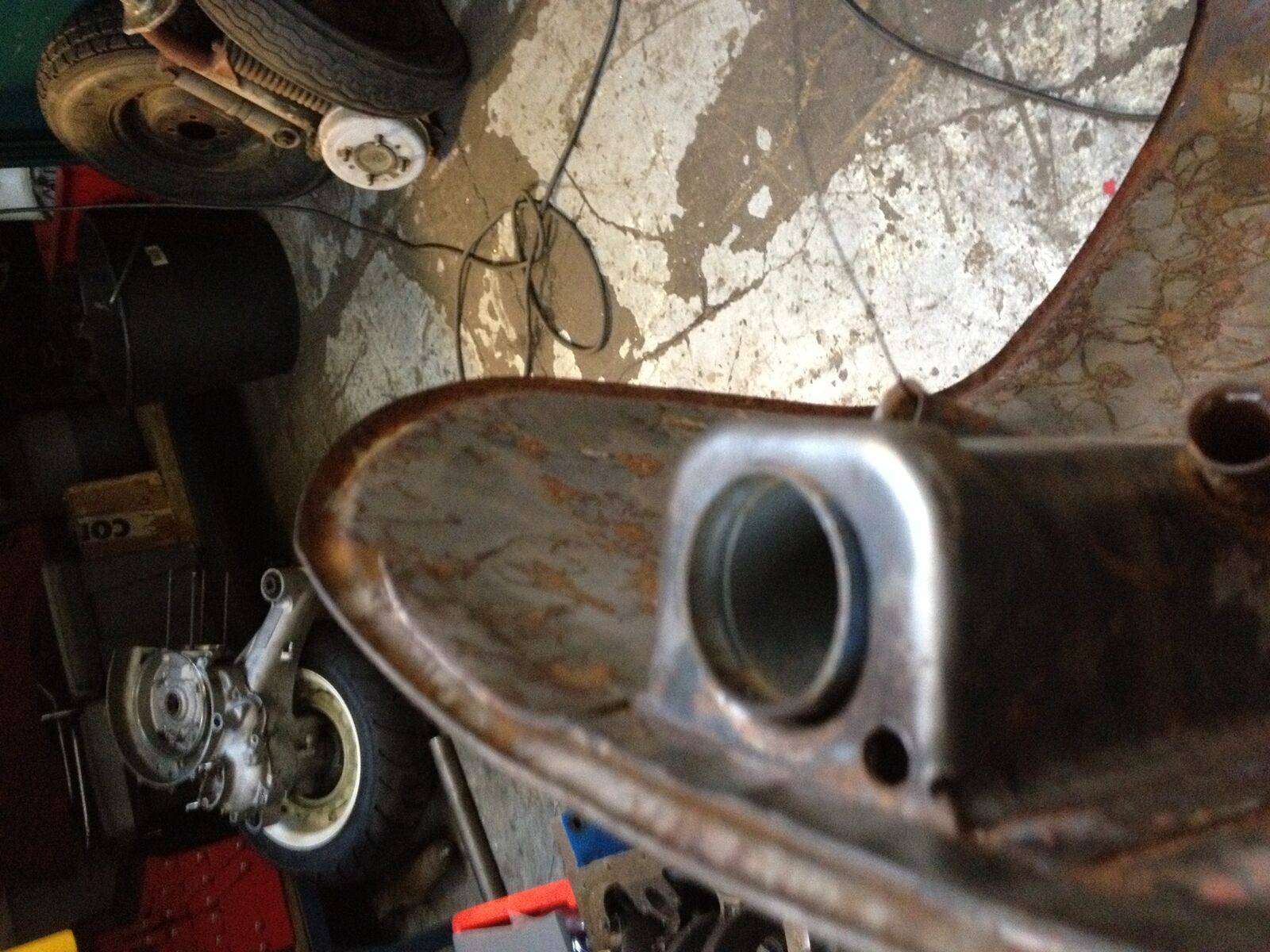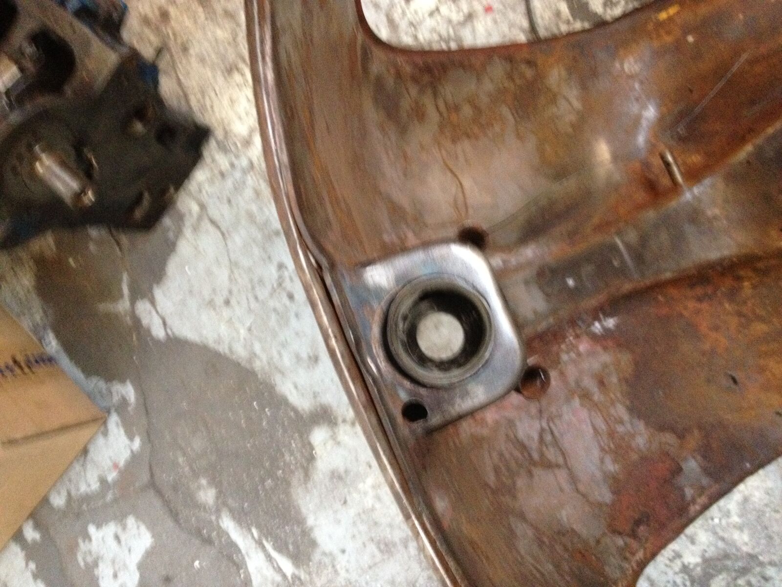 Das Mädchen hat sich doch etwas geziert bis das Rohr drin war. Dafür passt es jetzt recht gut. Es ist bei der Geschichte leider nur 1 Grad mehr Sturz rausgekommen, aber Kleinvieh macht auch Mist. Der originale Lagersitz hat 35mm Durchmesser, das Px Rohr hat 40mm. Ich habe den alten Lagersitz im Blech einfach nach hinten erweitert um mehr Sturz zu bekommen Auf dem zweitenm Bild sieht man vorn sehr gut die Kante vom alten Sitz.