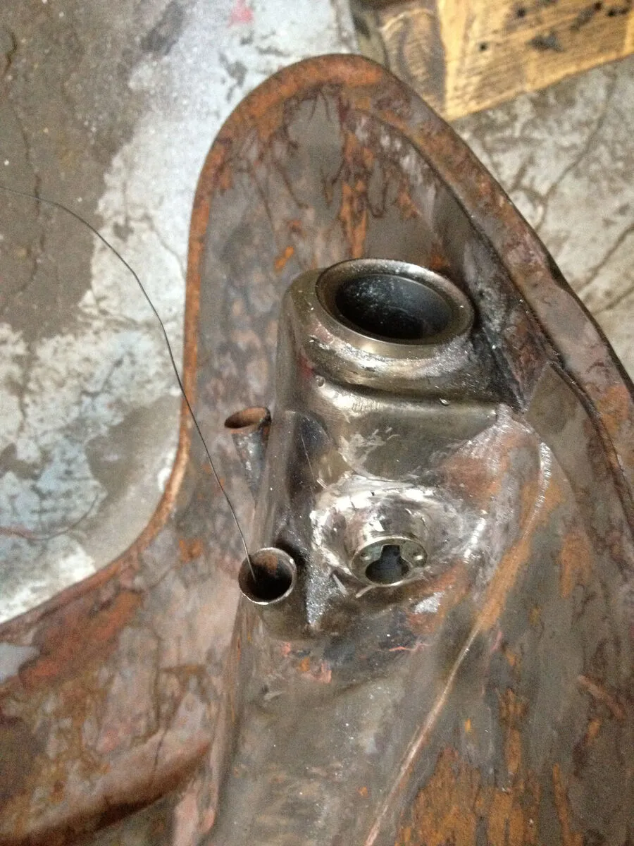Heute habe ich dann das Lenkrohr und den Schloßträger eingeschweißt. Scheissarbeit. Ich habe ganz vergessen wie wenig mir das Gefrickel Spaß macht.