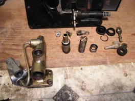 Hauptbremszylinder ausgebaut (auch bei Schräglage der Maschine ein Geduldsspiel) u. zerlegt, gesäubert (Kolben war fest) u. wieder zusammengebaut. Kolben bewegt sich wieder. Nach dem Einbau Bremse vorne u. hinten mehrmals entlüftet bis keine Blasen mehr kamen. Beim Betätigen der Fussbremse (mehrmaliges Pumpen) ist Bremswirkung vorhanden; aber das Pedal lässt sich anschließend bis zum Anschlag durchtreten u. die Bremswirkung ist verschwunden !!
