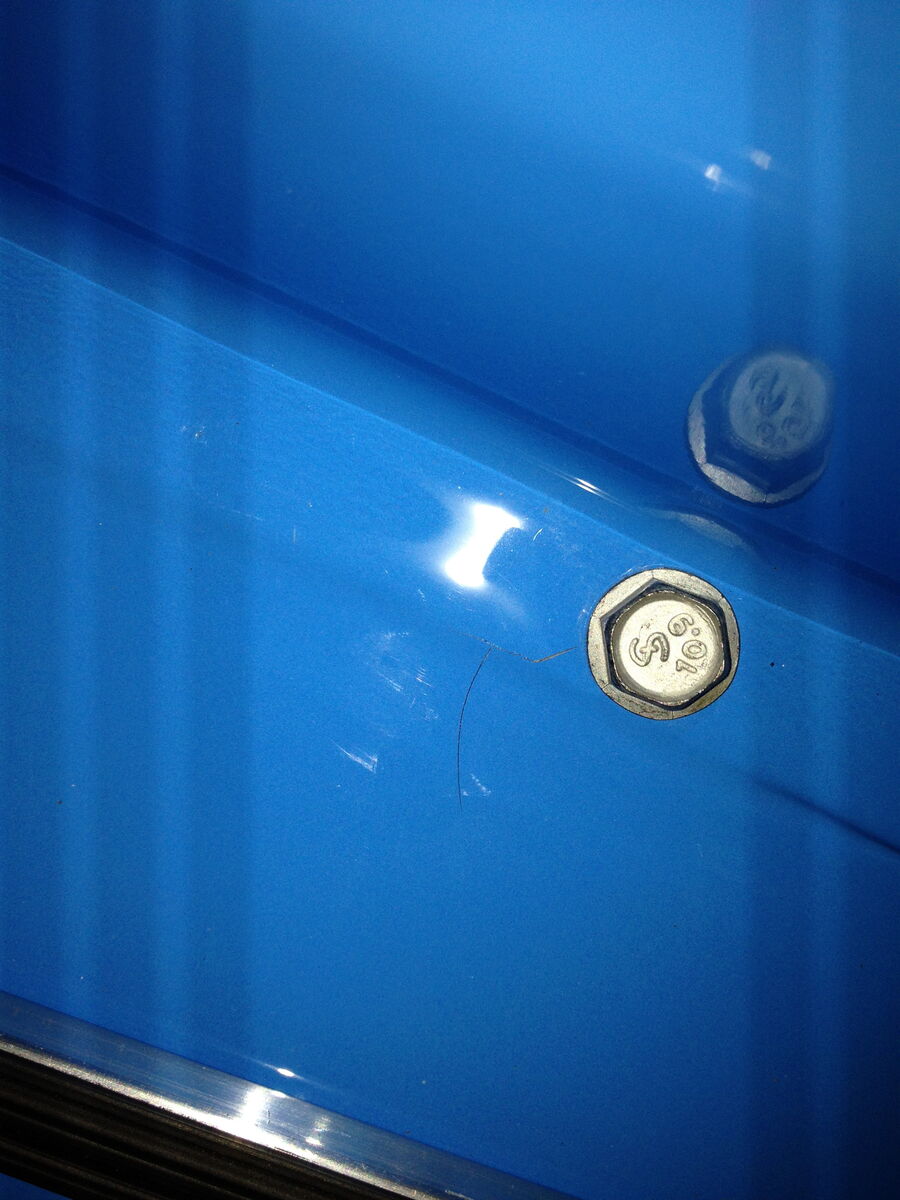 Naja, der Lack ist gerissen, wenn Du nix machst wird sich der Spachtel mit Wasser vollziehen und es wird anfangen zu Gammeln. Also Riß mit dem passenden Lackstift übermalen.
