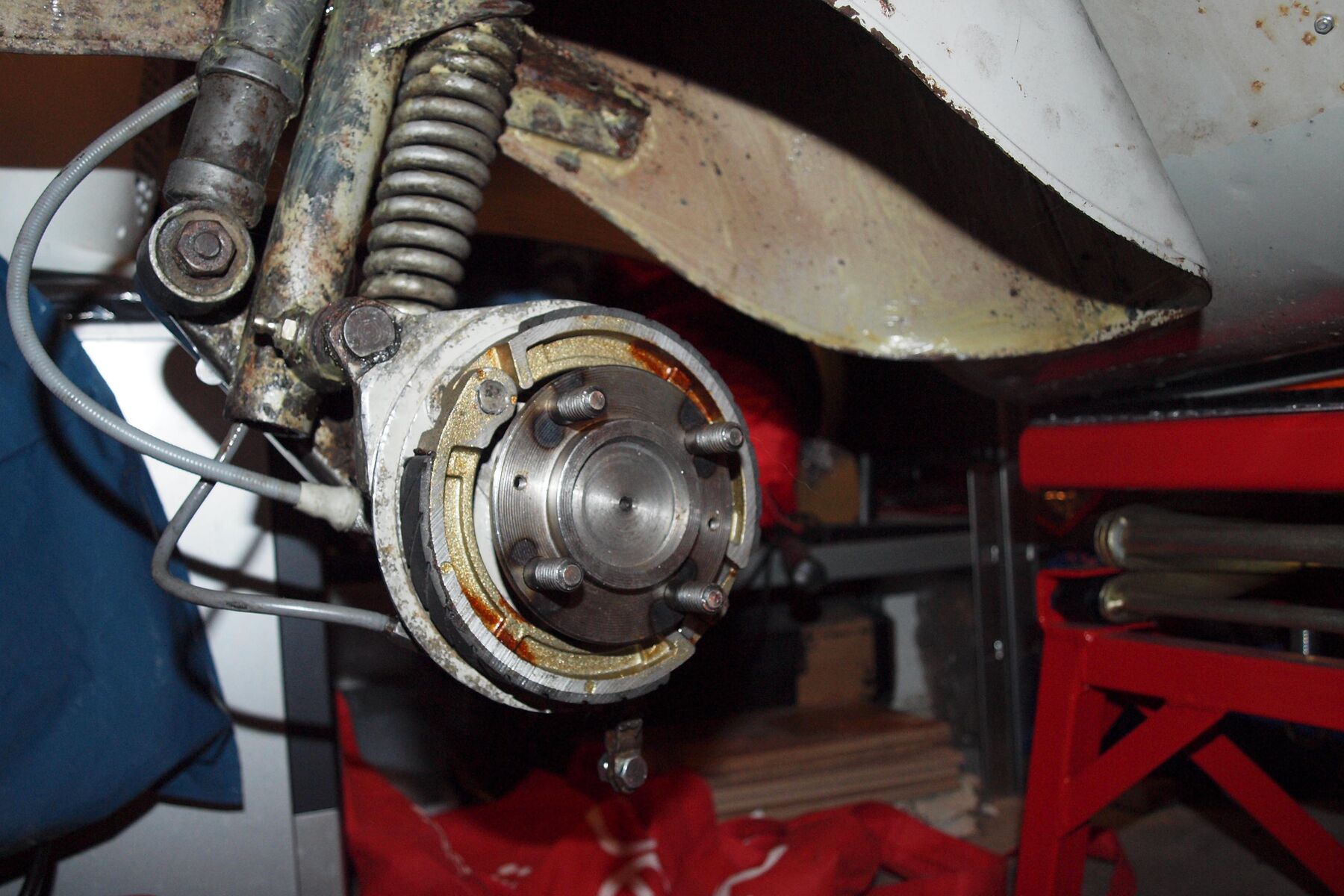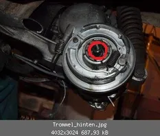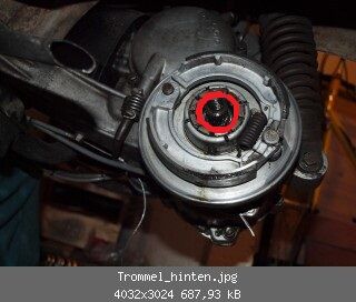 8.) Bremse hinten fast ohne Funktion. Mal geöffnet und siehe da, alles voller Öl. Welche Dichtung/Simmerring kann dort undicht sein und wie komme ich daran? Welchen muss ich tauschen? Passen die kleinen Schrauben (Danke @lehrbua) auch für hinten auf die Trommel?