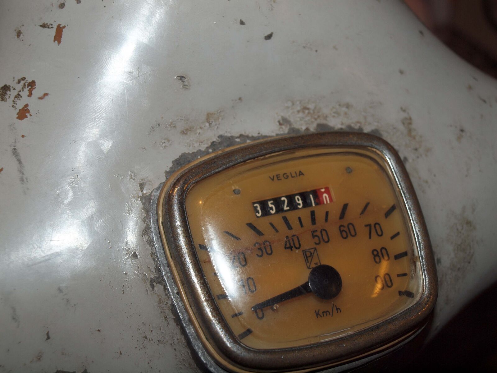 1. ) originaler Tacho ist nun endlich drin. Habe neue Welle eingebaut. Leider war die ein Tick kürzer als die alte. Mußte daher den schlauch etwas Kürzen, aber nun ist alles gut. (Riss ist im Ziffernblatt, nicht im Glas) Sieht doch viel schöner aus, oder?
