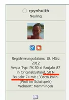 Habe heute folgendes versucht. Zündfunke ist vorhanden (ich meine allerdings etwas schwach, aber entweder habe ich einen oder keinen-stimmt das?-). [lexicon='Zündkerzenbild',''][/lexicon] rehbraun. Spritzufuhr in Ordnung, Vergaser total zerlegt und grundgereinigt, obwohl ich ihn im Juni schon im Ultraschallbad hatte. Habe also Sprit und Funken, aber die Vespa zündet nicht einmal, auch nicht beim Anschieben, sogar mit Startpilot habe ich es versucht. CDI ist übrigens auch seit Juni neu.