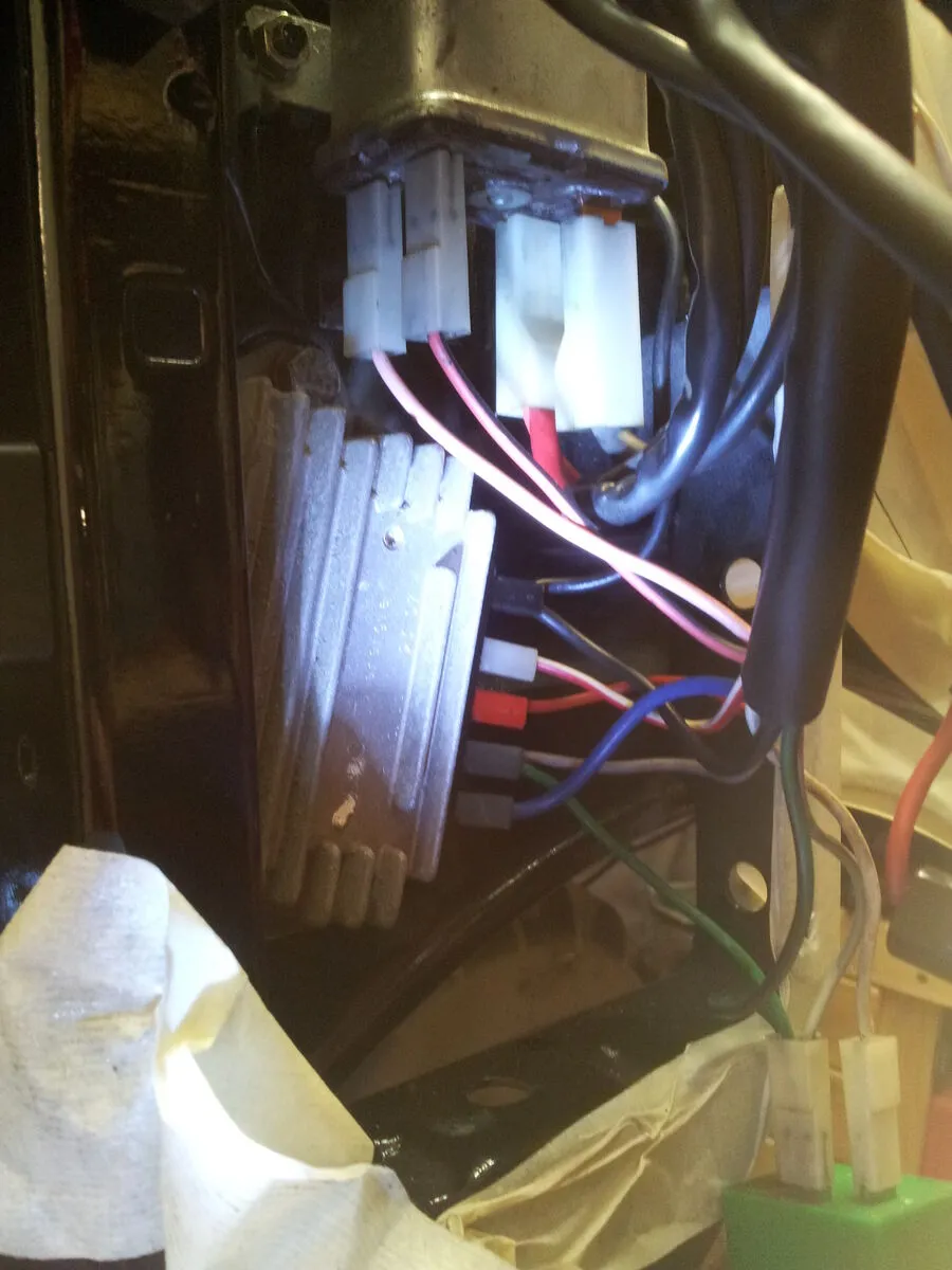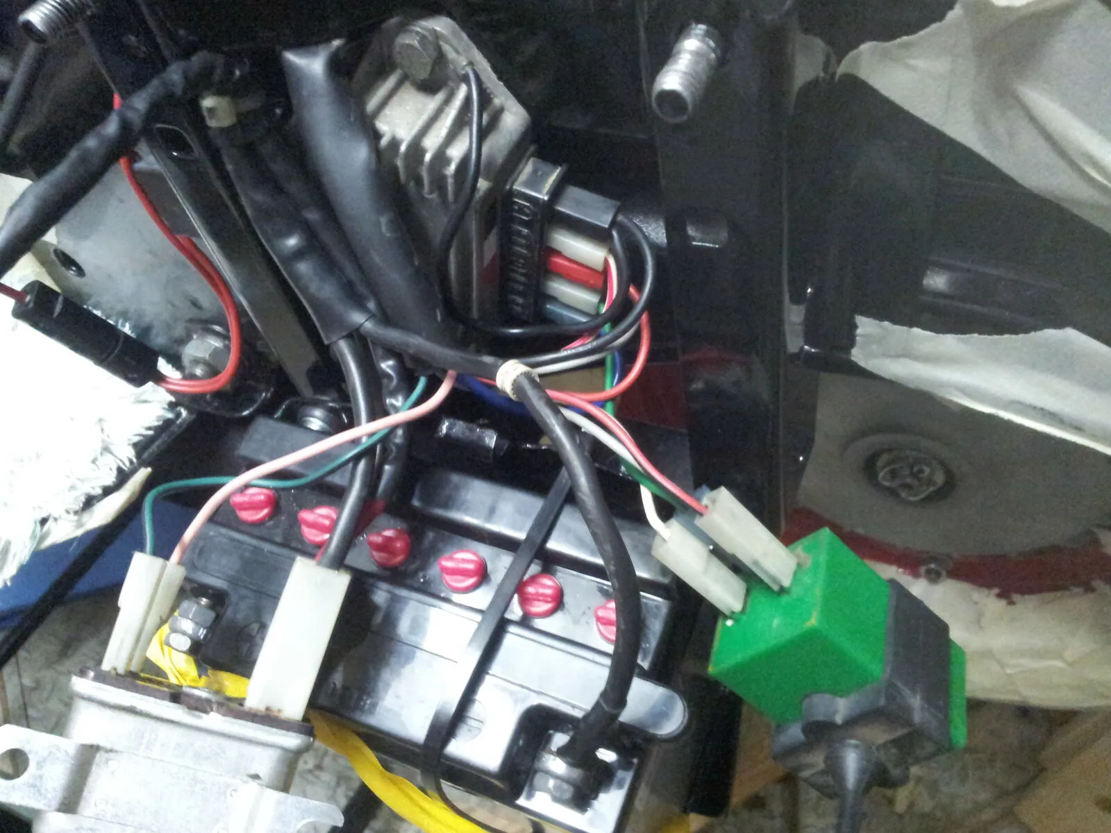 • ...die pins am Regler haben Farbpunkte in den Farben der Flachsteckerhüllen, das Anlasserrelais könntest Du mit nem Durchgangsprüfer messen, schön wäre es aber zu Wissen was nicht Funzt...