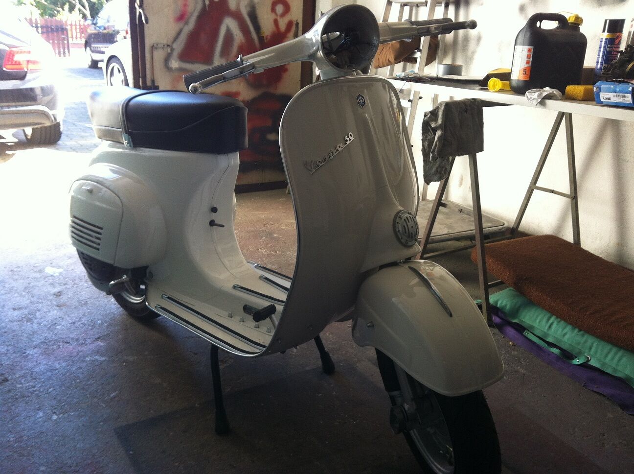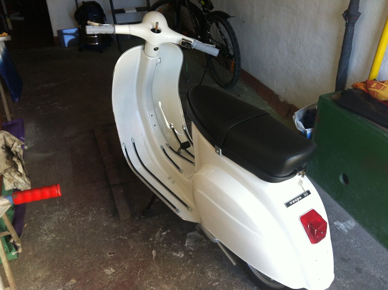 hab mich endlich mal hier in diesem tollen forum angemeldet. da meine vespa 50 r nun zu 99% fertig restauriert ist, wollt ich sie euch mal zeigen und wissen wie sie euch gefällt. Papiere sind beantragt und hoffentlich bald auch, damit ich den herbst noch ein bisschen fahrend genießen kann 8)