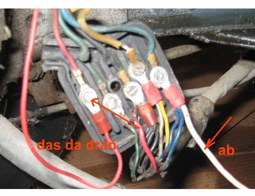 Schau dir doch mal den Schaltplan an dessen Link ich gepostet habe. Dann siehst du das Gelb nur Gelb bleibt und das Graue zusammen mit dem Grünen angeschlossen wird. Aber wie gesagt probier es erstmal ohne Kabelbaumanschluß indem du das blaue Kabel das aus der Grundplatte kommt mit dem grünen Kabel aus der Grundplatte verbindest. Wenn der Motor dann läuft sieht man weiter. Es kann nämlich keiner sagen was der Vorbesitzer wann und warum verkabelt hat.
