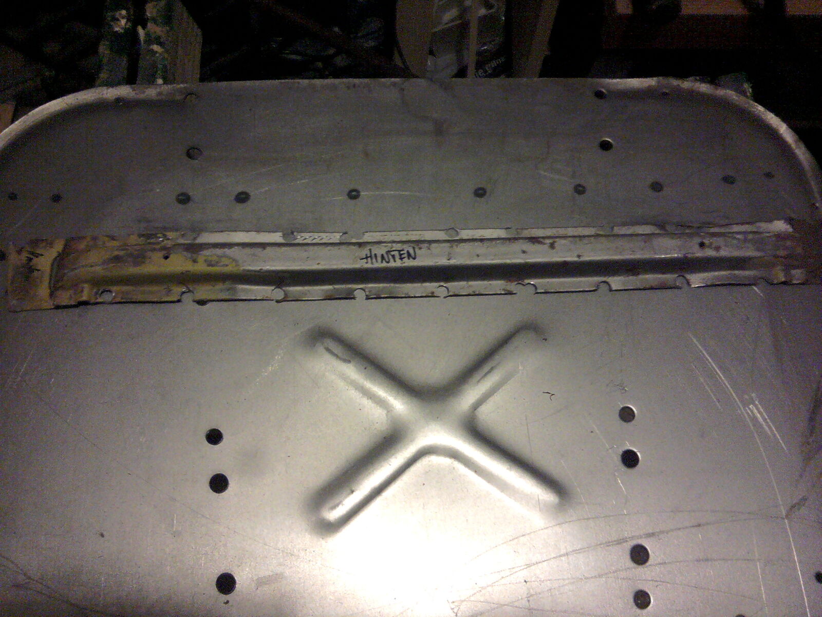 derzeit bearbeite ich das besch... Trittblech , weil die Querstreben derart billig aussehen und weit vom Original abweichen ,werden sie gerade runter gebohrt