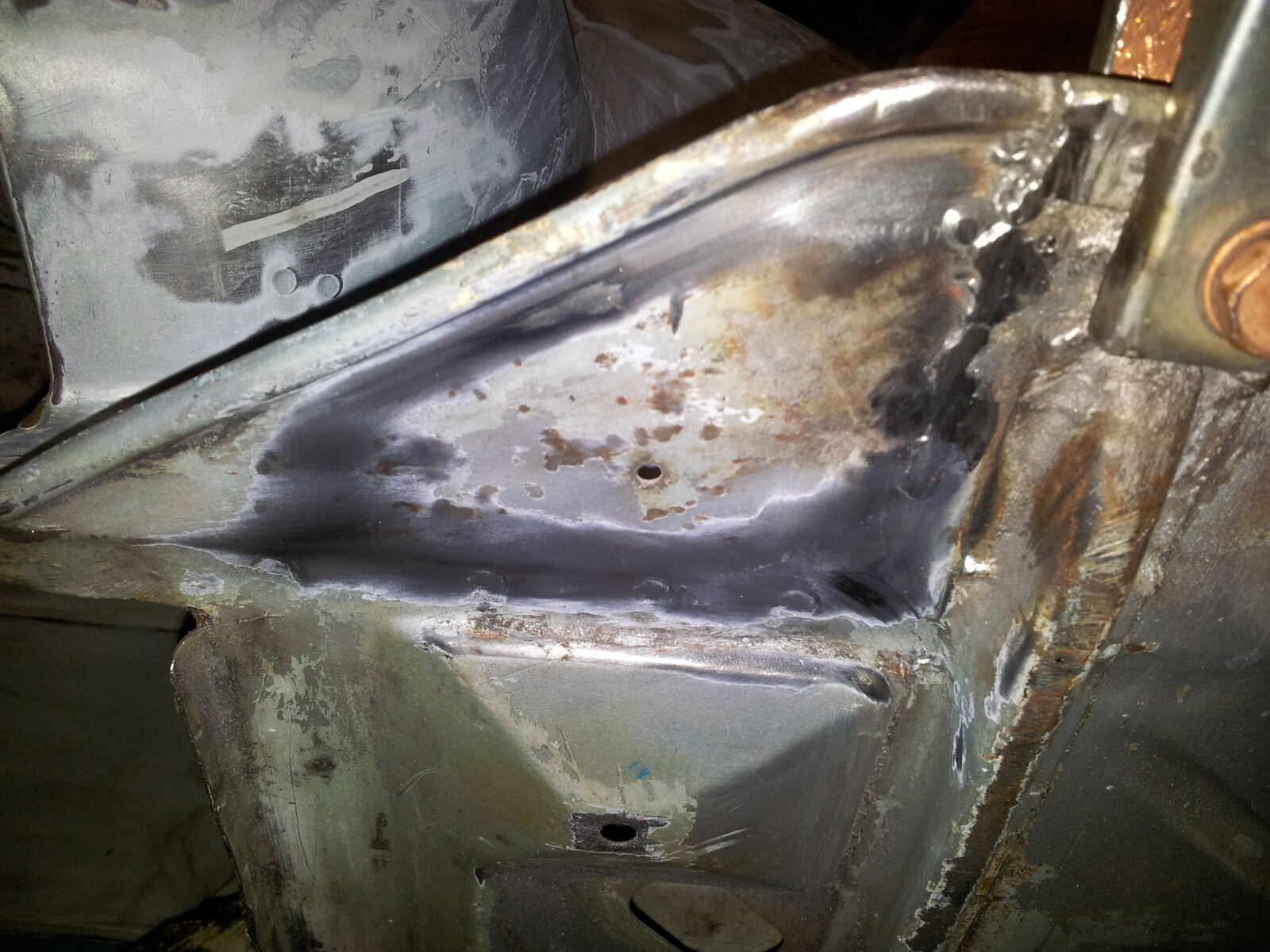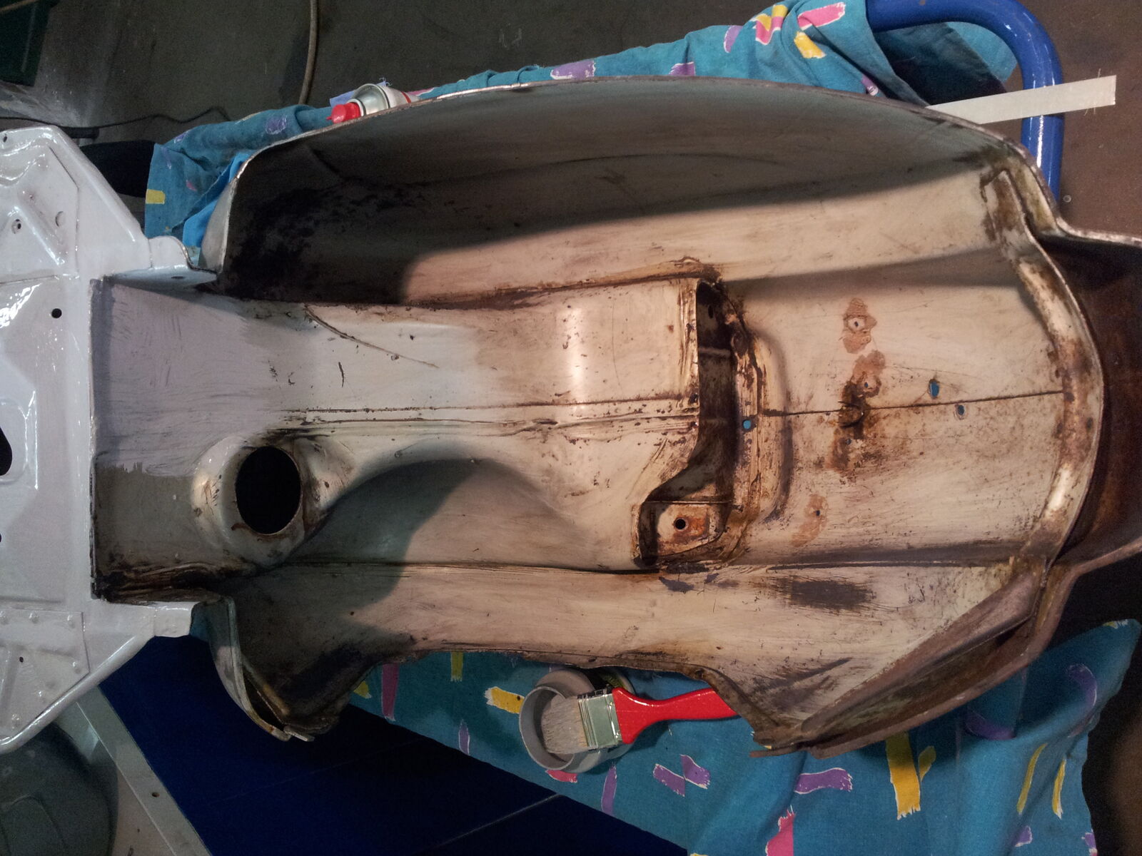 Den Unterboden hab ich angeschliffen genauso wie den Motorraum und das Radhaus.