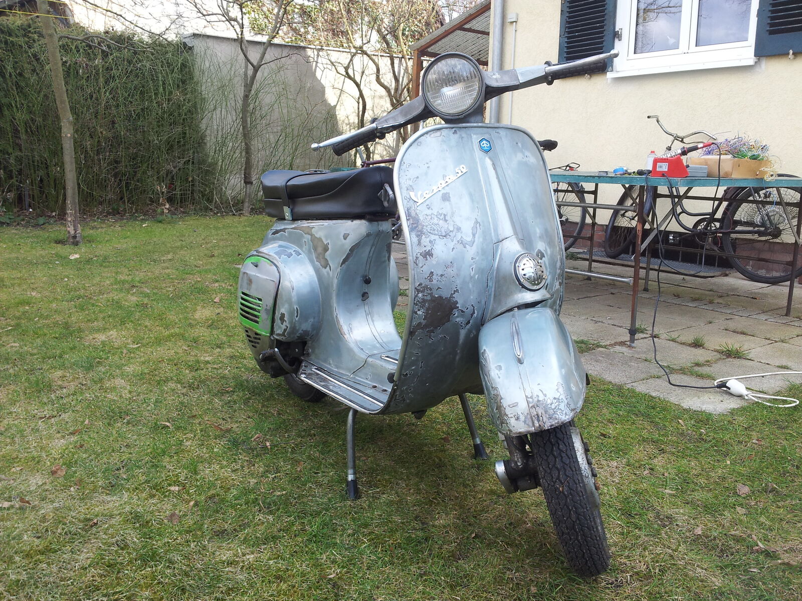 die Vespa ist mittlerweile fast komplett zusammengebaut.