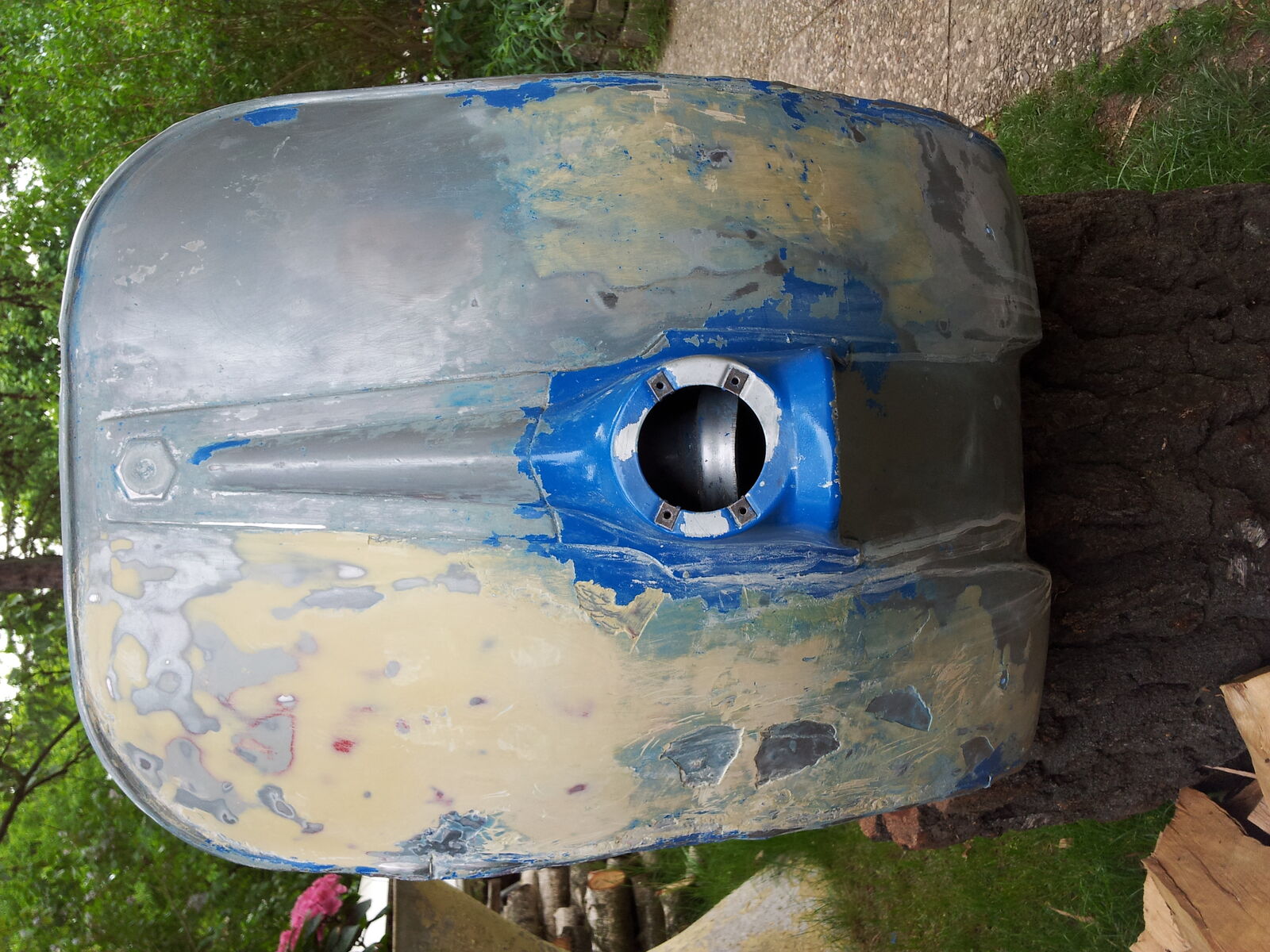 Also los gings gleich mit Aceton erstmal die blaue Schmiere runtergeholt mittlerweile sieht das ganze schön rattig in silbernem O-Lack aus. Aber einfach war das nicht hab bestimmt für den Lack bis jetzt 30Std gebraucht.