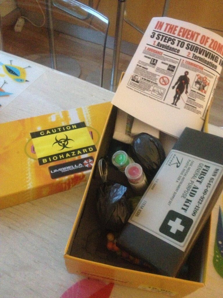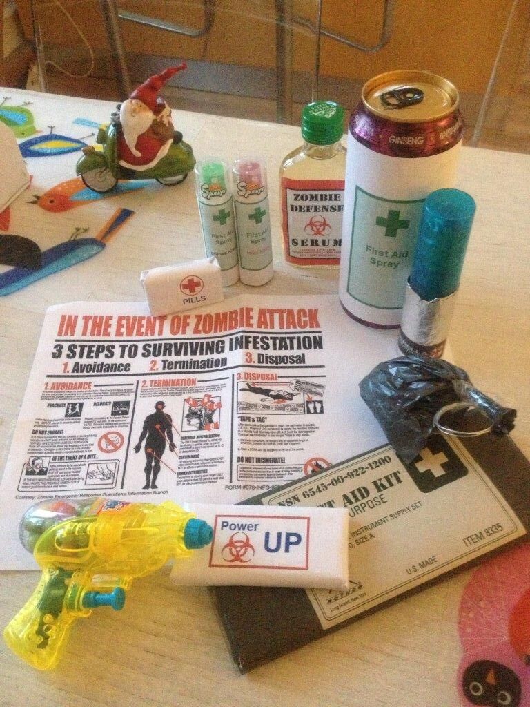 kam ja bekannterweise familie vechs am 24ten vorbei und brachte mir ein zomie-survival-kit. ich geb zu, ich mußte es mir erst erklären lassen