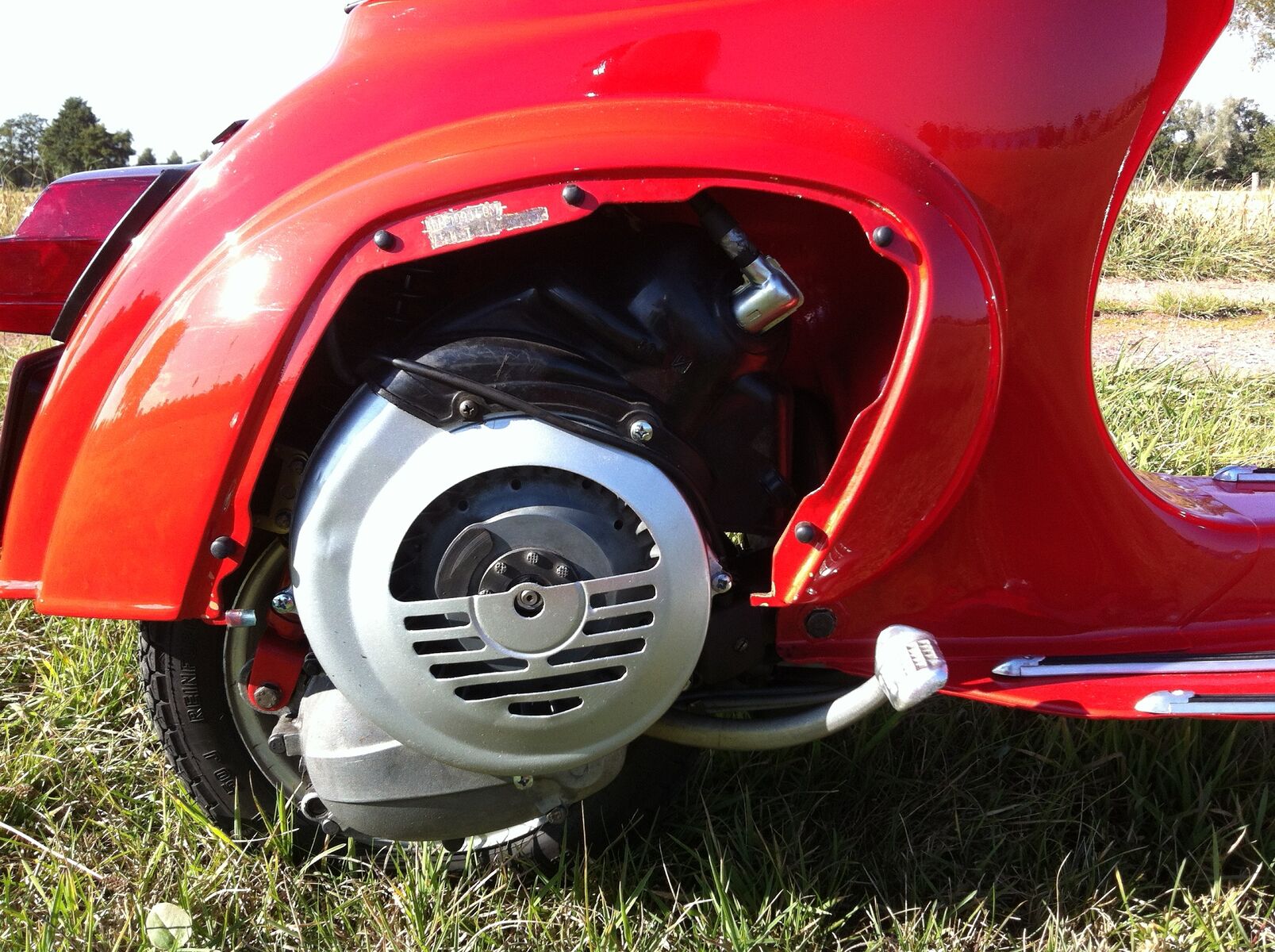 Der Roller wurde komplett in der Farbe Ral 3000 in einem Lackierbetrieb lackiert. Den Motor habe ich komplett überholt, also neu gelagert und abgedichtet. Auch eine neue Kupplung, DR 75, neue Züge und neuer Kabelbaum, sowie neue Reifen und Bremsbacken wurden eingebaut. Neue Sitzbabk ist auch drauf und der Roller wurde seit dem Neuaufbau ca 500 km gefahren.