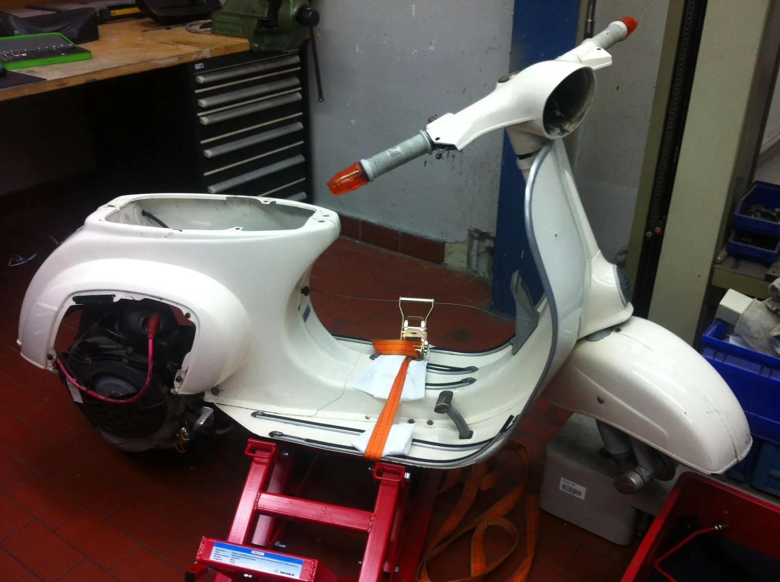 hab hier mal ein fertig gelegtes Ei. Den Roller hab ich von August bis November für einen Bekannten hergerichtet.