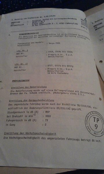 aber noch mit 80 km/h und 21 Zähne auf der Kupplung. Der Brief mit diesen