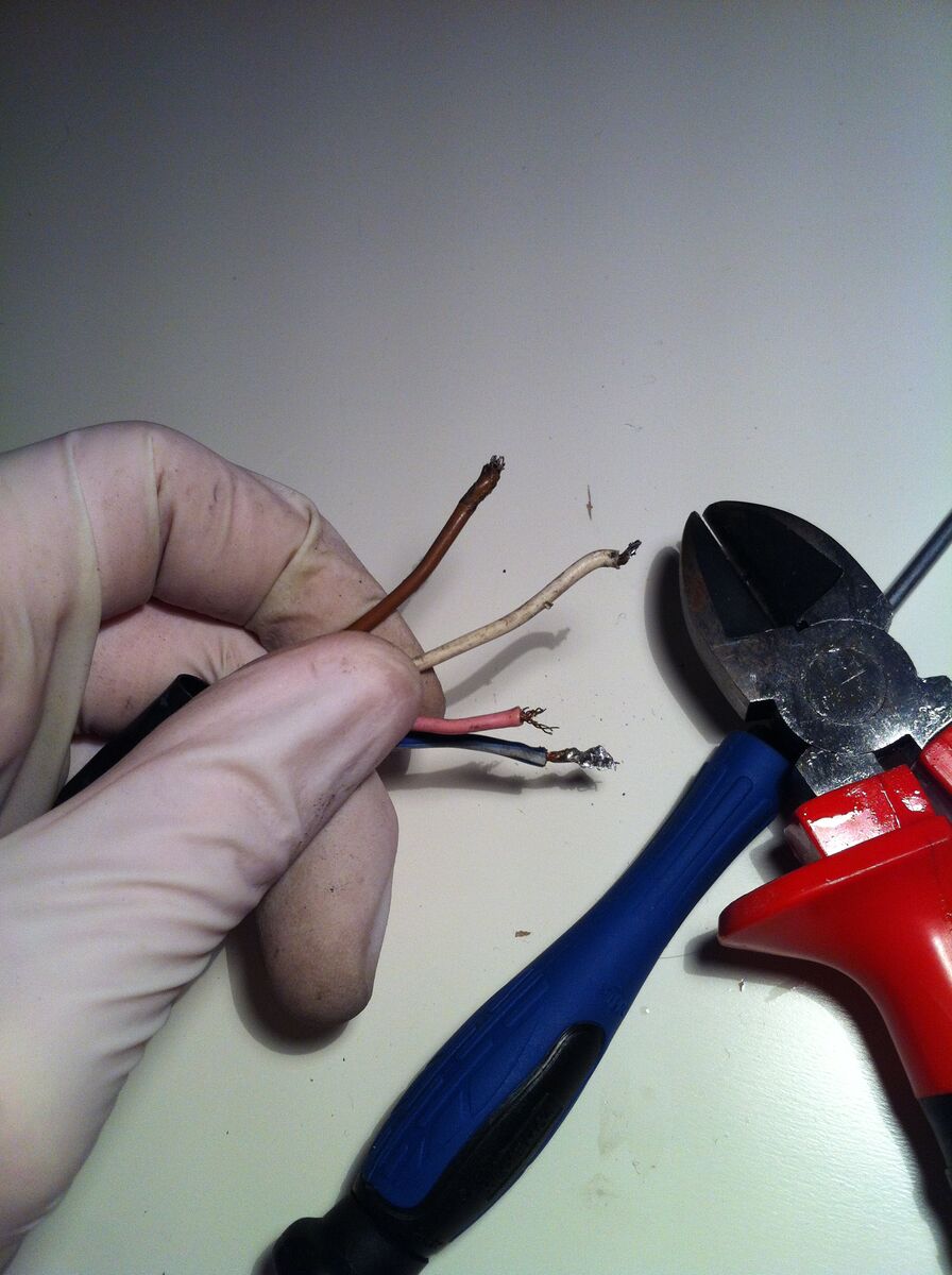 Also erst einmal Lötkolben angemacht und währenddessen mit einem kleinen Schraubendreher die Rundsteckerhülsen aus ihrem Combistecker herausgedrückt.